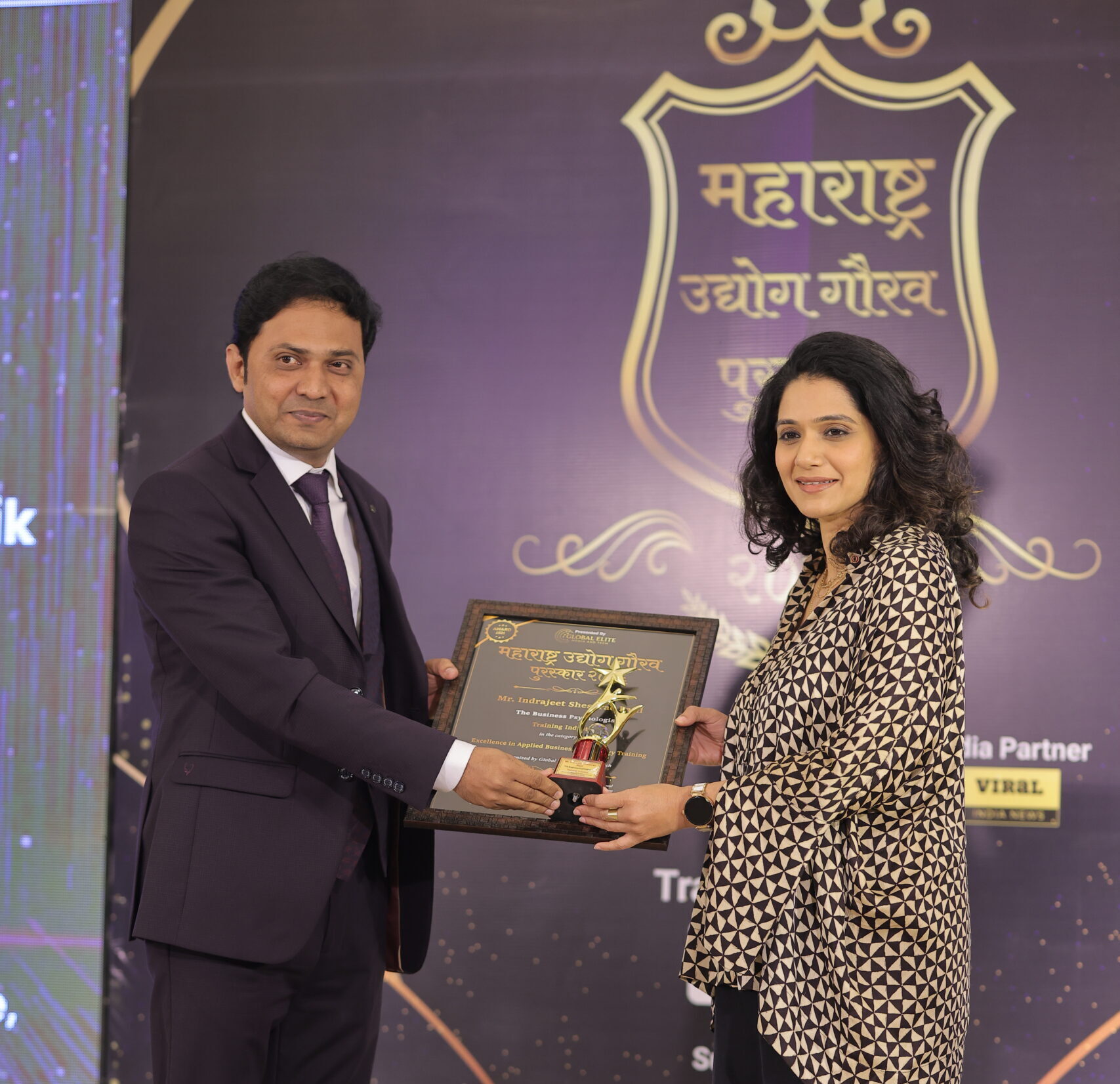ट्रेनिंग इंडस्ट्री में Applied Business Psychology के माध्यम से व्यवसायिक नेतृत्व, निर्णय-क्षमता और परफॉर्मेंस डेवलपमेंट को नई दिशा देने के लिए The Business Psychologist – Mr. Indrajeet Sheshrao Patil को “महाराष्ट्र उद्योग गौरव पुरस्कार 2026” के अंतर्गत ‘Excellence in Applied Business Psychology Training’ के प्रतिष्ठित सम्मान से सम्मानित किया गया।
